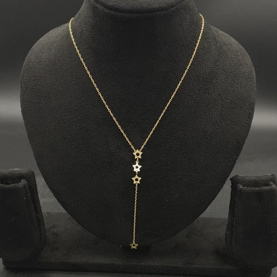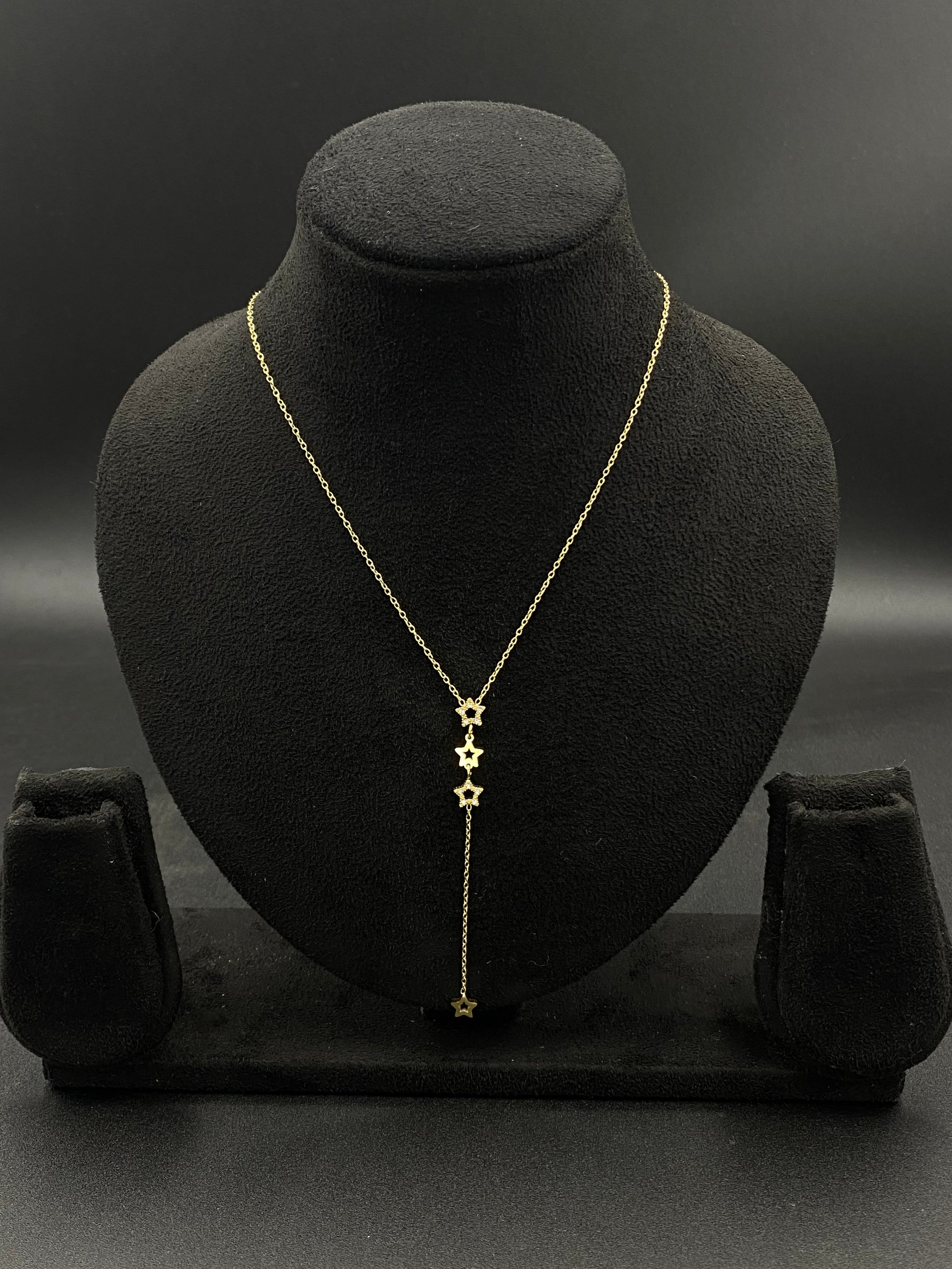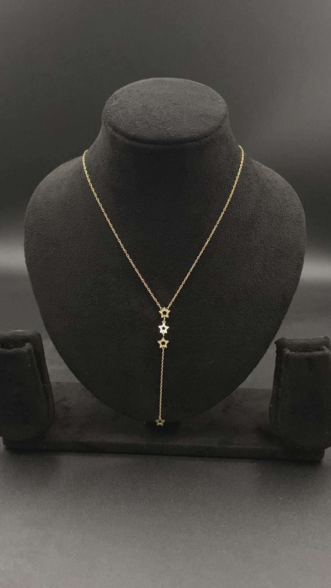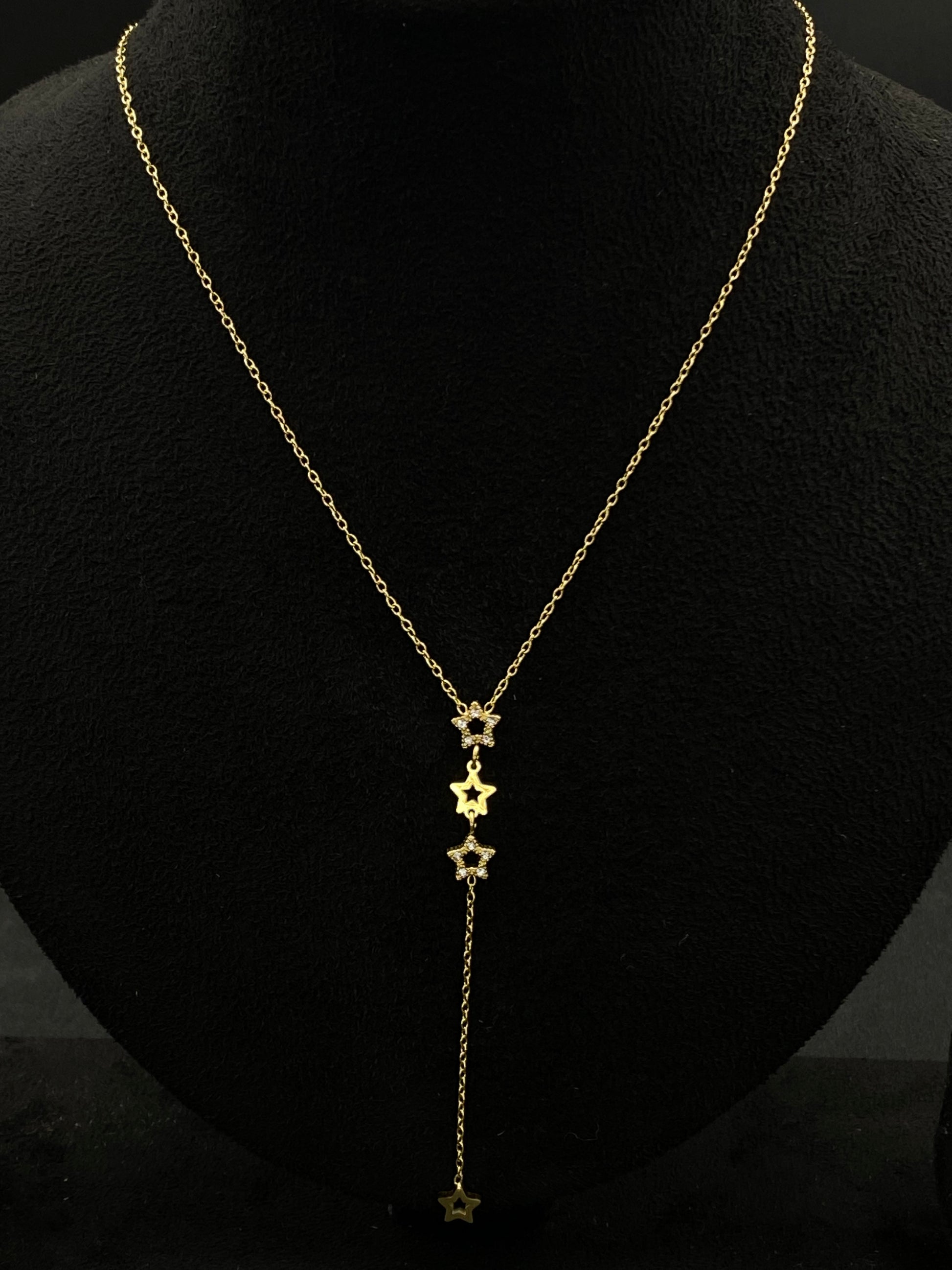 Shine effortlessly with this delicate gold star drop necklace. Featuring layered star charms with a graceful lariat drop design, this celestial piece adds a touch of sparkle and elegance to any look. Perfect for everyday wear, layering, or gifting someone special.